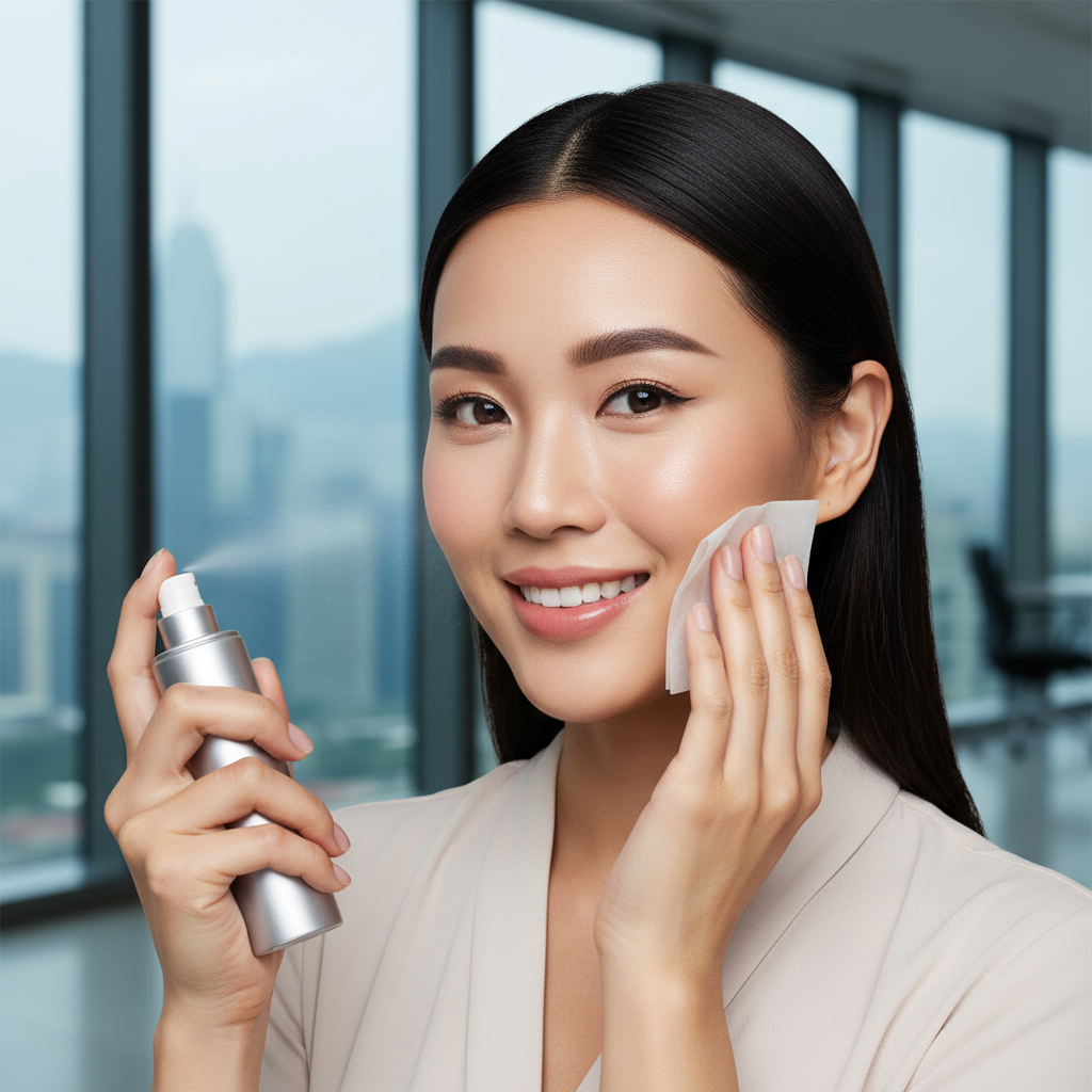 另外,隨身帶面部噴霧是神器。化妝前後噴一層,含礦物質或玫瑰水的款式,能即時降溫保濕,令皮膚清涼,妝容煥新。例如在地鐵上感覺油光閃閃,輕噴一口,等乾後補粉,就好似給妝容飲了一杯涼茶,重振精神。這個技巧特別適合香港通勤族,一日噴三次,就能維持十二小時無瑕。